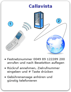 2 Abhängig von Ihrem Mobilfunk- bzw. Festnetzvertrag können zusätzliche Kosten für die Anwahl der deutschen Callavista Festnetzrufnummer entstehen.